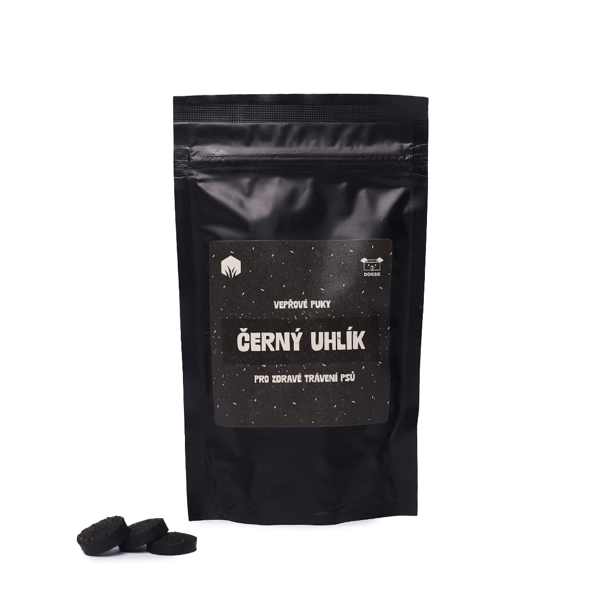 ČERNÝ UHLÍK je pamlsek s živým uhlím, který byl vyroben ve spolupráci se start-upem Živý uhlík. ŽIVÉ UHLÍ je přírodní přípravek z rostlinného uhlí, podporující zdravé trávení. Pomáhá udržovat rovnováhu střevního prostředí a podporuje rozvoj střevní mikrobioty. Pamlsek je vyrobený v Česku.
